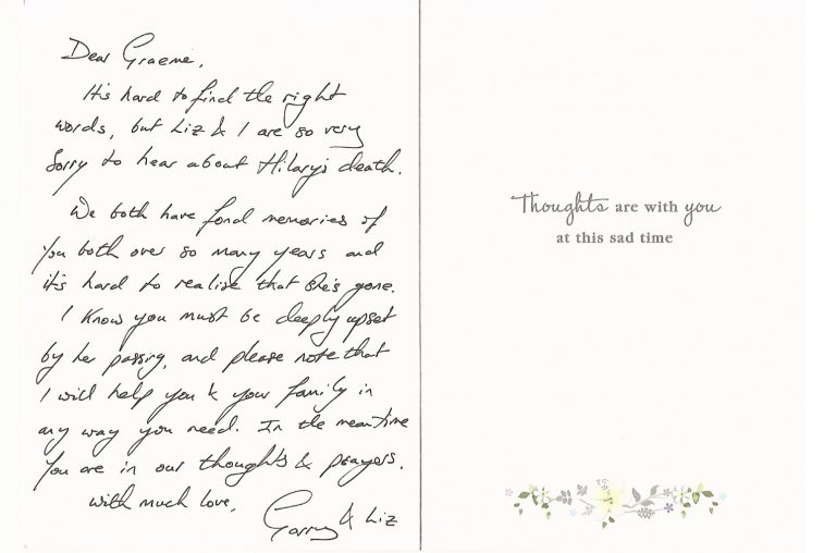 The kindness and love we received from so many at the news of Hilary’s passing, the numbers that braved storm Eunice, demonstrates how special Hilary was to so many and how proud I am that she choose to be my special woman.