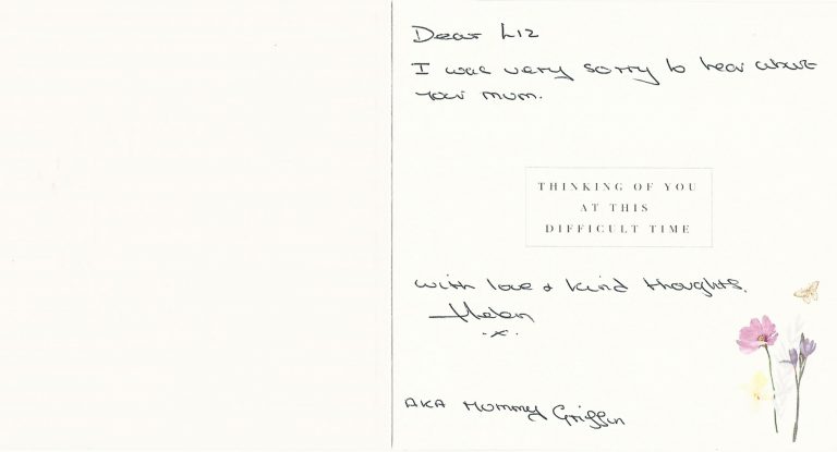 Today, I and our three children are surrounded by friends made possible by her lifetime of actions to ensure people are around us to give the support so needed at this time of immense grief and sorrow.